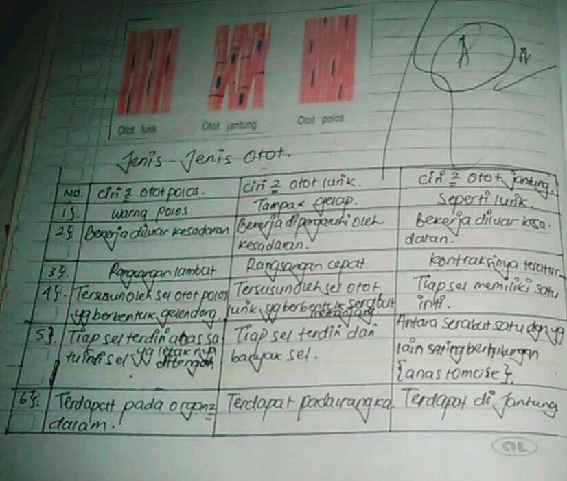 Otot terbagi menjadi tiga jenis yaitu otot lurik, otot polos dan otot jantung. Otot polos berkontraksi dengan refleks karna otot polos merupakan otot tak sadar (otonom). Salah satu perbedaan yang mencolok dari ciri otot lurik polos dan jantung adalah letak dan cara kerjanya di dalam tubuh. Otot lurik/ otot rangka · 2. · letaknya berada di bagian organ dalam.